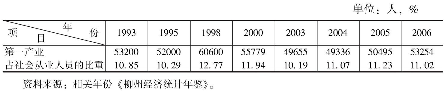 表9-1 1992~2006年主要年份柳州市国家与社会管理单位从业人员年末人数