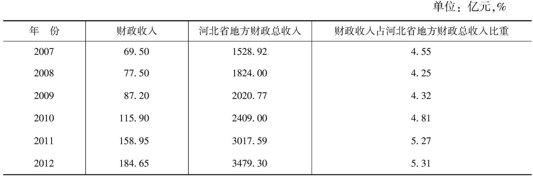 从表28-1可以看出,邯郸市财政收入规模的绝对数稳步增加,其中2007年突破60亿元大关,2010年突破100亿元大关,2012年突破180亿元大关;2007~2012年平均财政预算收入为22.90亿元;2011年绝对数增长最快,比上年增长43.05亿元,增幅达37.14%,2008年增长最慢,绝对数增长8.0亿元,增幅