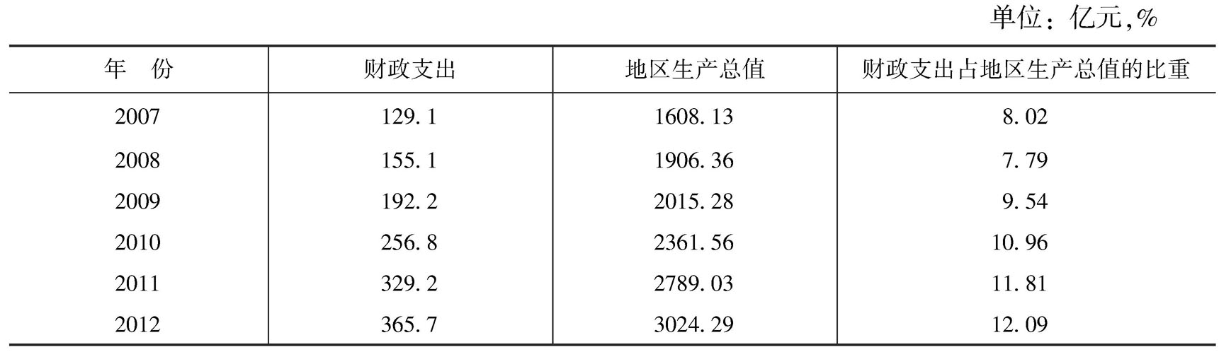 从表28-1可以看出,邯郸市财政收入规模的绝对数稳步增加,其中2007年突破60亿元大关,2010年突破100亿元大关,2012年突破180亿元大关;2007~2012年平均财政预算收入为22.90亿元;2011年绝对数增长最快,比上年增长43.05亿元,增幅达37.14%,2008年增长最慢,绝对数增长8.0亿元,增幅