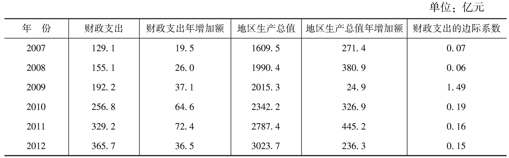 从表28-1可以看出,邯郸市财政收入规模的绝对数稳步增加,其中2007年突破60亿元大关,2010年突破100亿元大关,2012年突破180亿元大关;2007~2012年平均财政预算收入为22.90亿元;2011年绝对数增长最快,比上年增长43.05亿元,增幅达37.14%,2008年增长最慢,绝对数增长8.0亿元,增幅