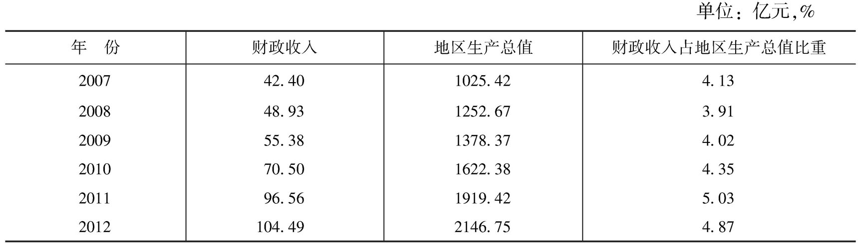 图片名称: 聊城市2007~2012年财政收入占地区生产总值的比重情况