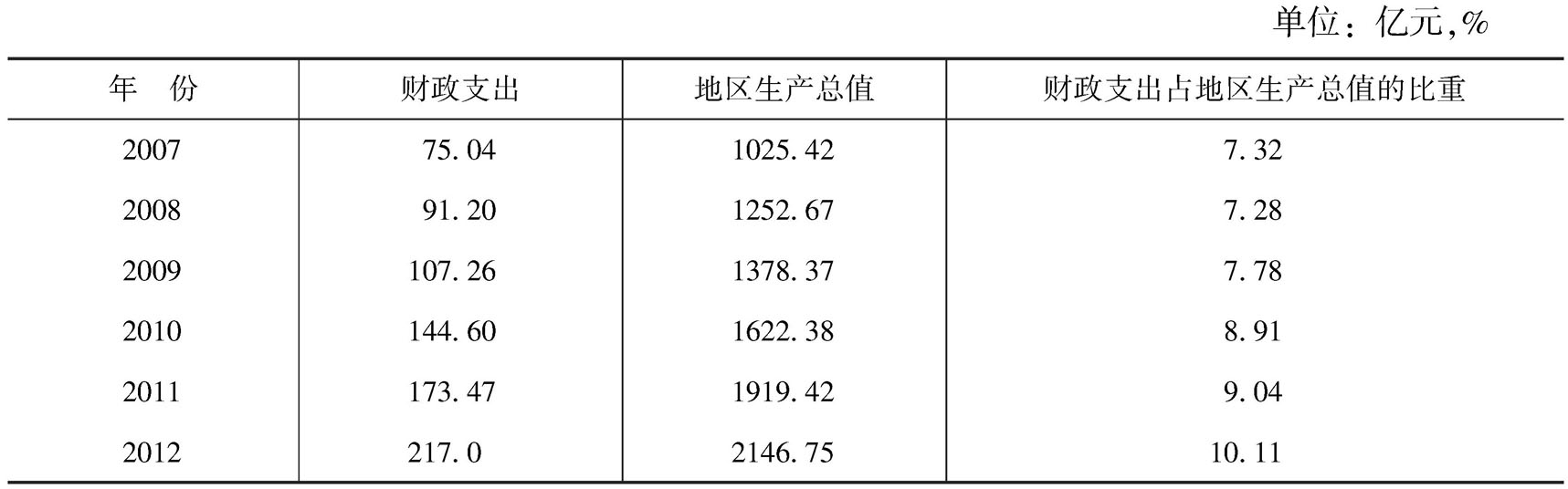 图片名称: 聊城市2007~2012年财政支出占地区生产总值比重情况