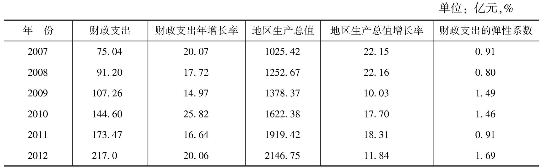 从表29-1来看,2007~2012年,聊城市财政收入逐年增加,2007年达到42.40亿元,2010年突破70亿元,2012年达到104.49亿