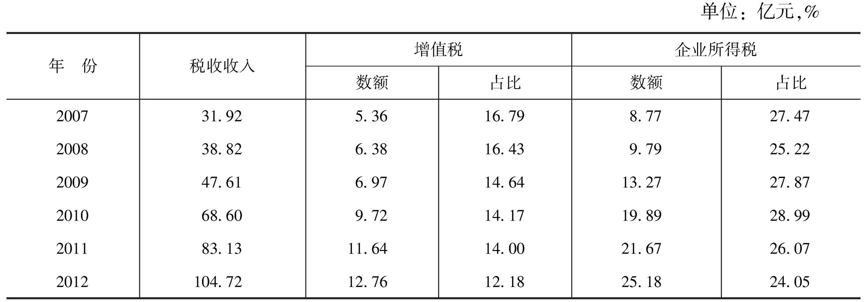 图片名称: 菏泽市2007~2012年税收收入的项目结构情况
