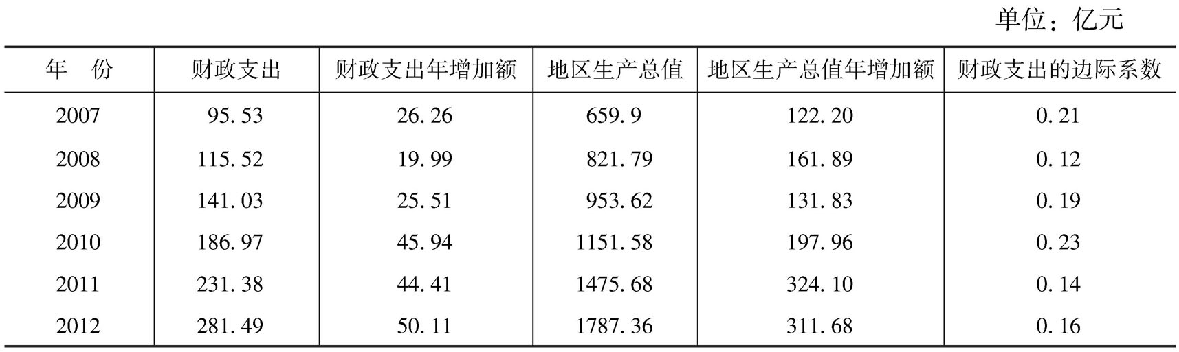 图片名称: 菏泽市2007~2012年财政支出的边际系数