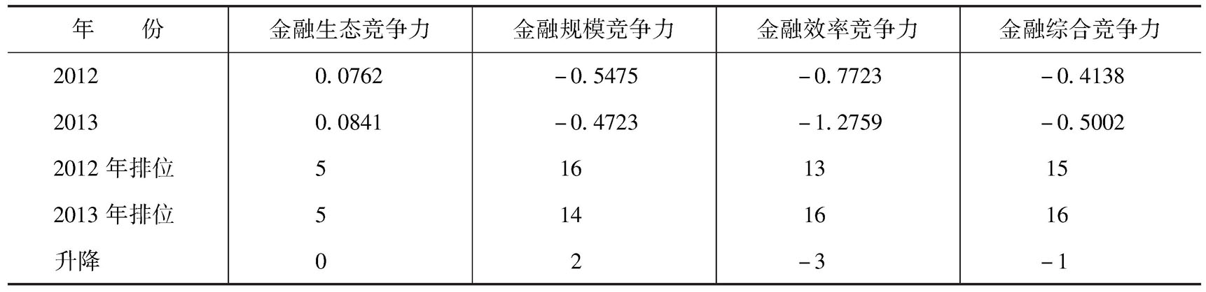 表18-2-1 三门峡市2012~2013年区域经济实力竞争力及其四级指标