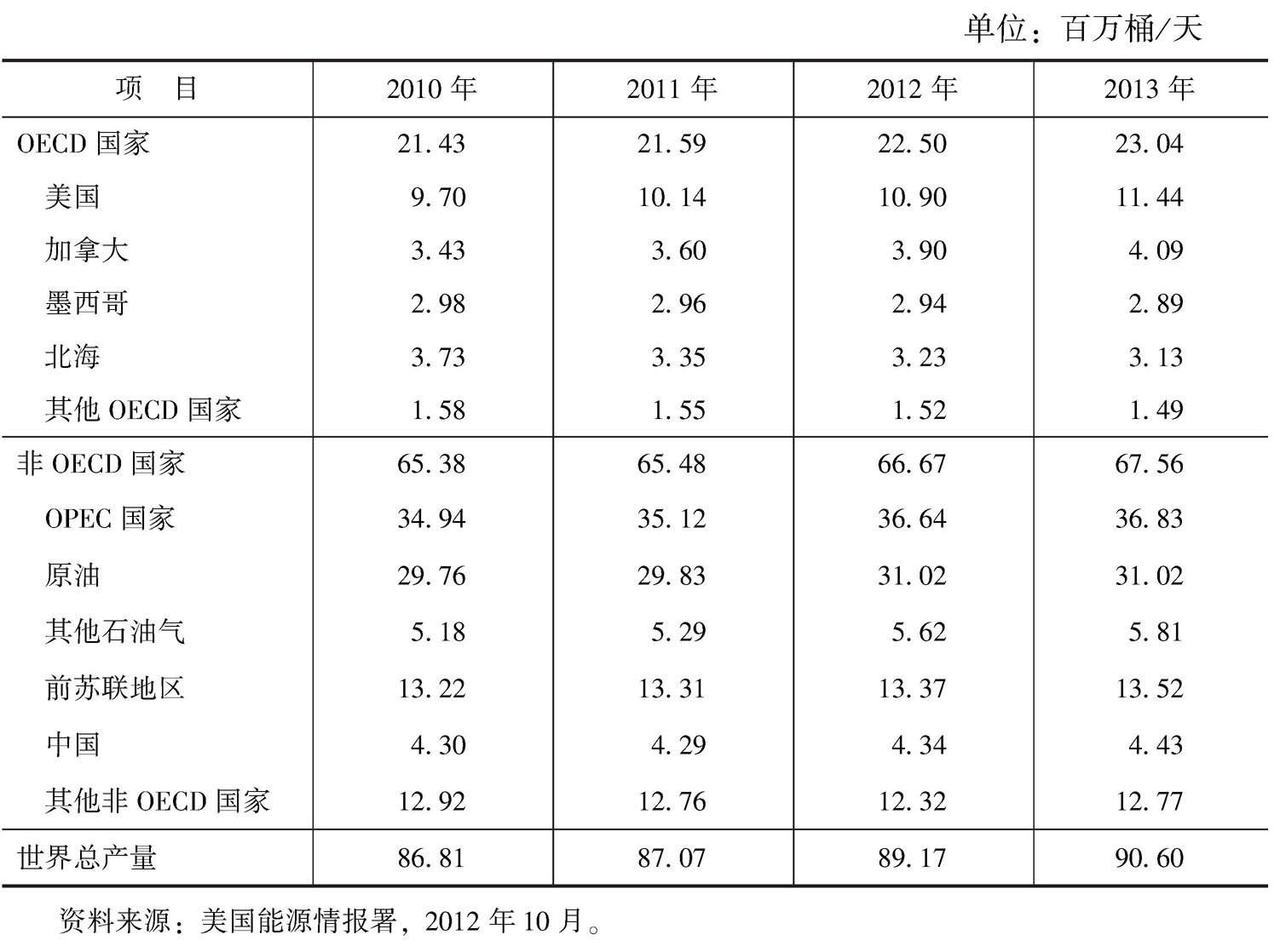 2012年以来,国际油价大起大落、波动剧烈,呈现出典型的波段性涨跌走势。WTI原油期价在每桶77~110美元波动,峰谷波幅超过了40%,完全处于上年运行区间之内,既没有创新高,也没有创新低。截至10月底,纽约市场WTI原油期价平均为95.6美元/桶,同比增加约1美元,微涨1.1%,北海Brent原油期价平均为112.2美元/桶,同比增加不到1美元,微涨0.9%。WTI原油期货价格与Brent的差距保持在每桶16美元左右。总体来看,年底前WTI原油期价将在每桶80~100美元剧烈震荡,预计2012年全年WTI原油期价平均约为95美元/桶,与上年基本持平。