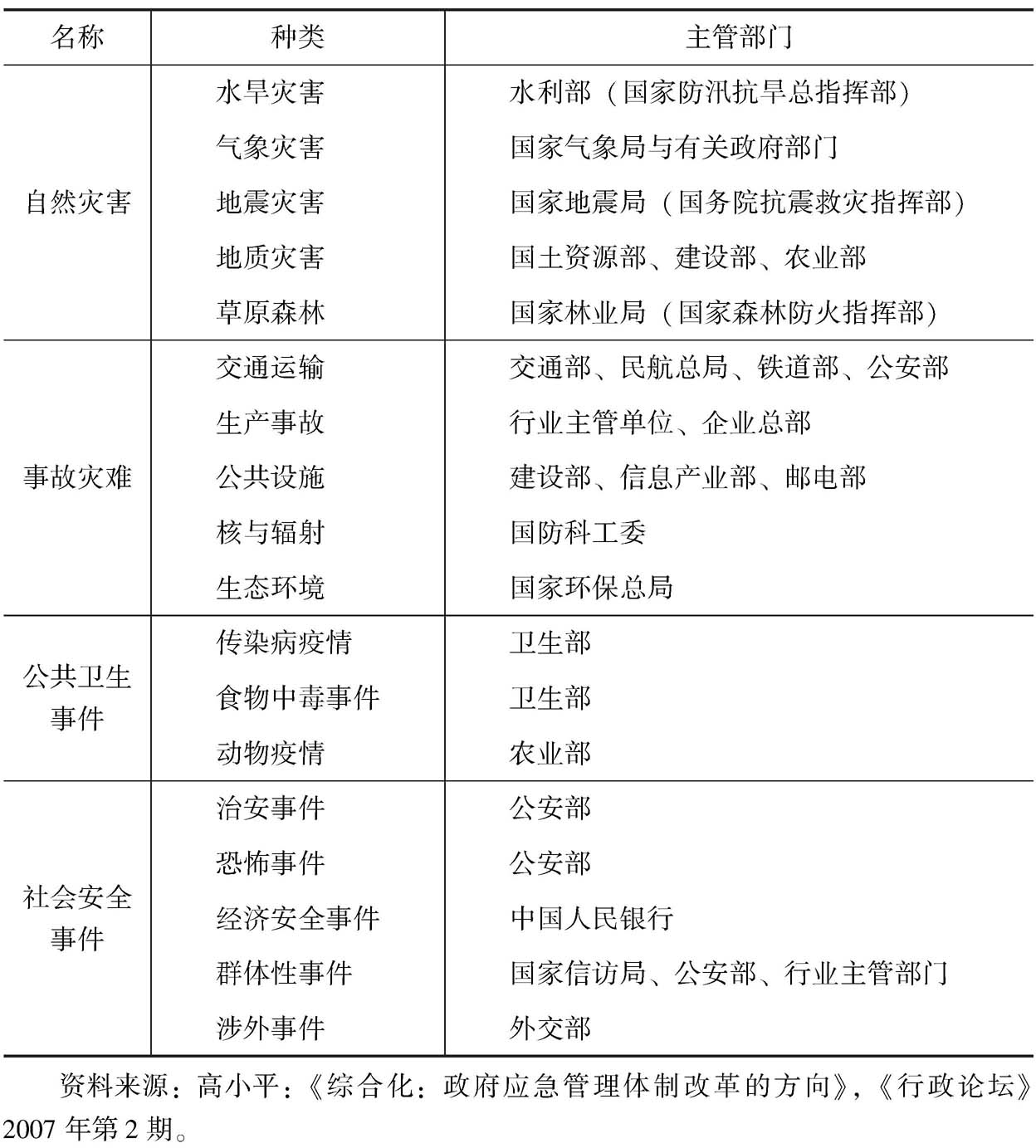 当前行政管理所面临的重大挑战是应对来自外部灾害事件的能力,“危机与紧急灾难的处理,将是未来政府行政人员面临的最大挑战”。W.J.Petak. “Emergency Management:A Challenge for Public Administration”,Public Administration Review,1985(Special Issue):3-7.灾害与人类社会进程相伴,灾害与历史发展紧密关联。长期以来,基于社区为主体的应对模式与行政体制模式是人类社会应对灾害的两种基本方式,而经过长期历史演变,灾害管理已被纳入各级政府的行政职能体系之中,行政体制模式便成为应对灾害的主导模式。