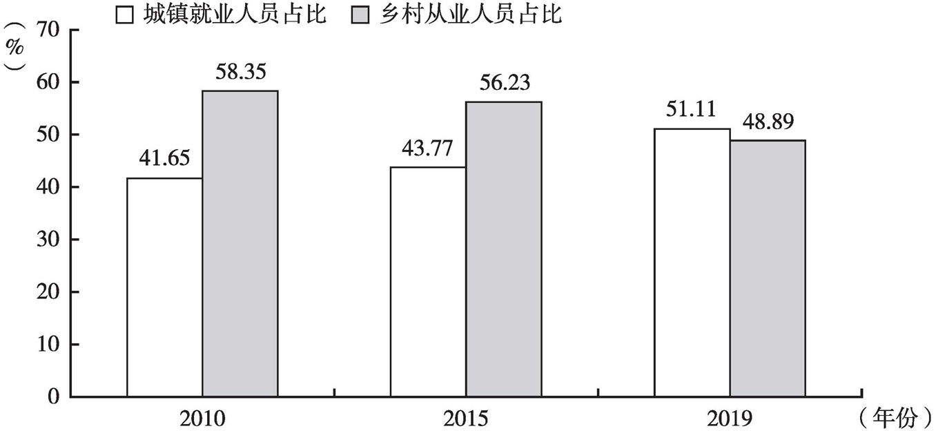 图片名称: 2010~2019年广东城乡就业(从业)人员结构变化