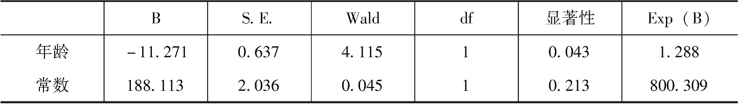 图片名称: 农民工年龄因素对农地流转影响因素模型估计结果