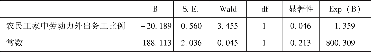 图片名称: 农民工家中劳动力外出务工比例对农地流转影响因素模型估计结果