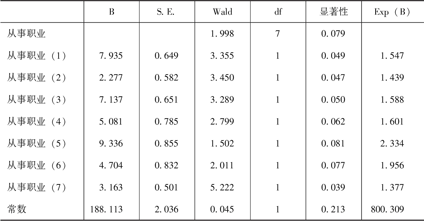 图片名称: 农民工从事职业因素对农地流转影响因素模型估计结果