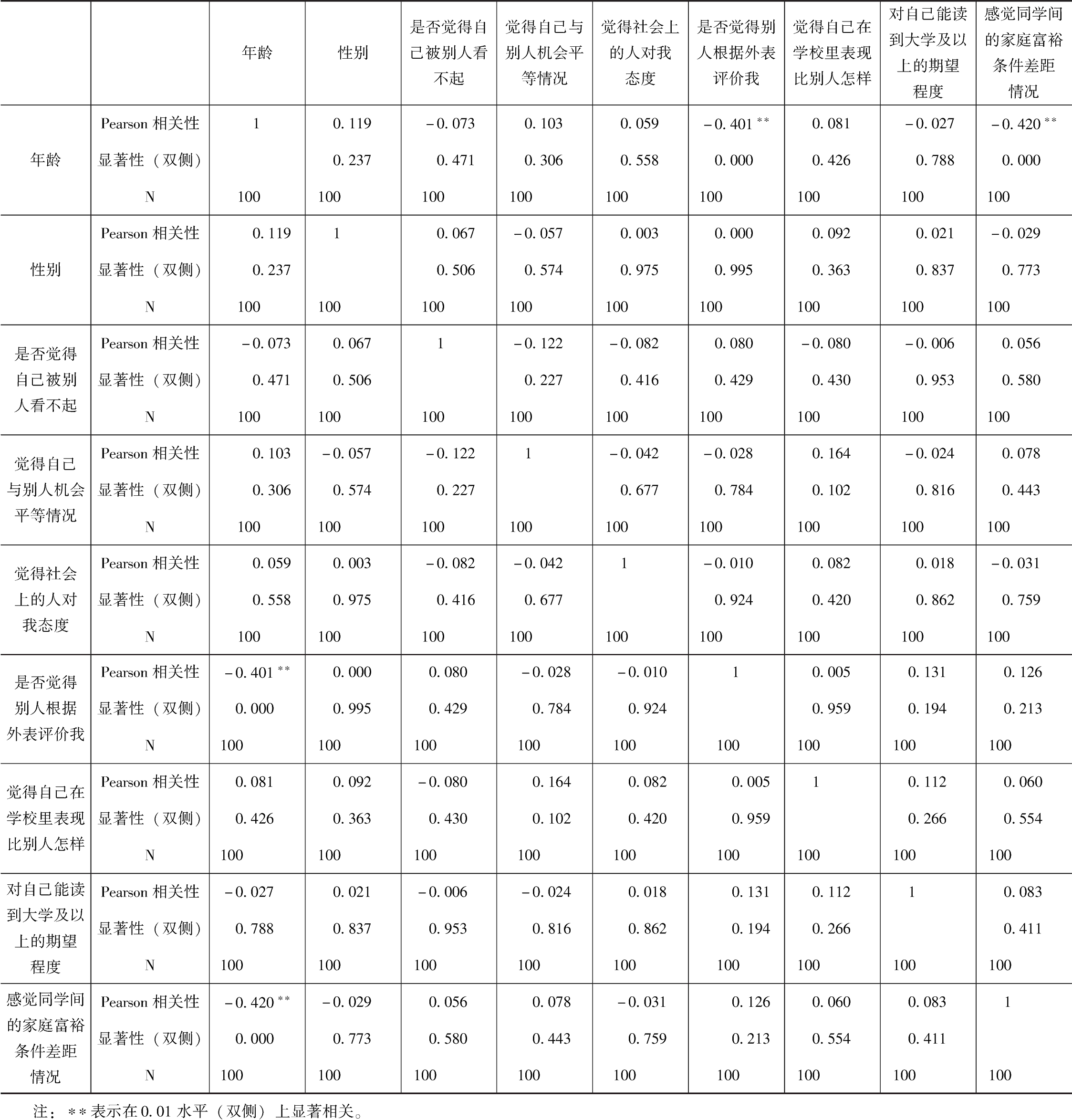 图片名称: 农民工子心理适应各指标与年龄及性别的相关性分析