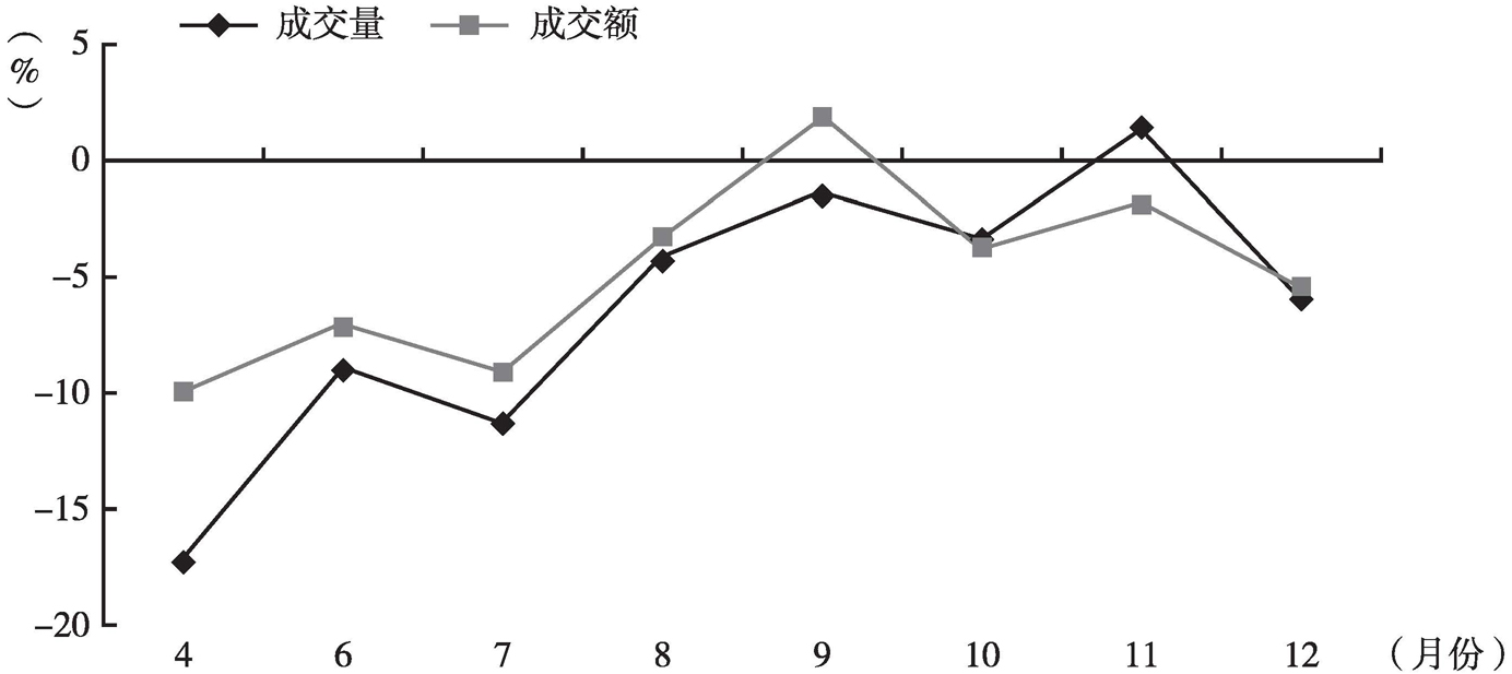 图片名称: 2020年水产品成交量和成交额的变化(上年=100)