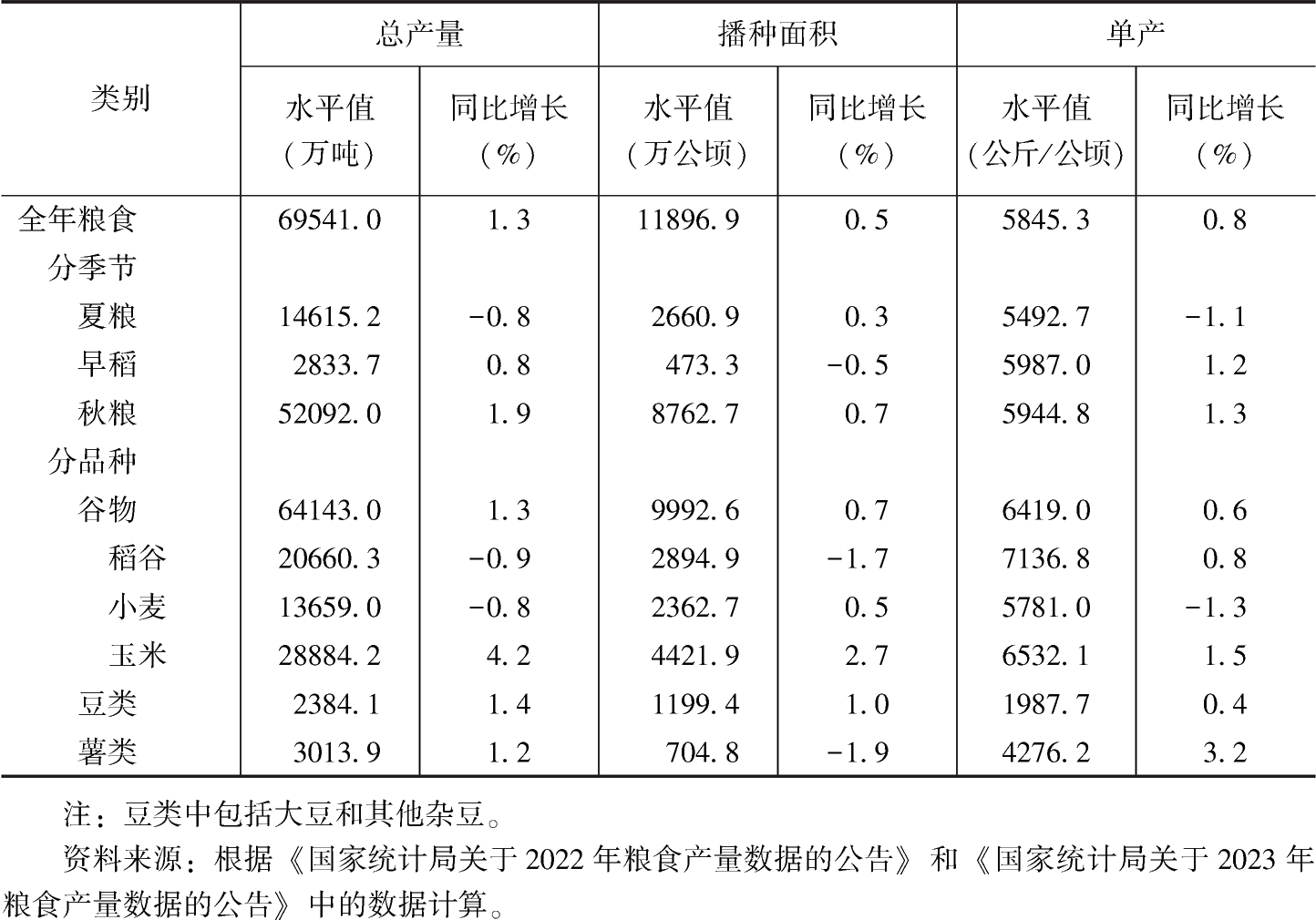 党的二十大提出加快建设农业强国的伟大战略目标。全面建设社会主义现代化国家,最艰巨最繁重的任务仍然在农村。2023年是贯彻落实党的二十大精神的开局之年,是三年新冠疫情防控转段后经济恢复发展的一年,也是锚定建设农业强国目标的起步之年。面对较为严重的自然灾害等多重不利因素,中国采取全面落实粮食安全党政同责、加大高标准农田建设投入和管护力度、加大核心技术攻关力度、提升农业防灾减灾救灾能力、健全防止返贫监测帮扶机制、强化农民增收举措等有力措施,推进乡村全面振兴取得积极进展。2023年农业农村发展保持稳中向好、稳中有进的势头,农业经济基本盘进一步夯实,粮食产量再创历史新高,脱贫攻坚成果持续巩固拓展,涉农产业发展势头良好,农民收入较快增长,农村社会和谐稳定,为经济回升向好、高质量发展扎实推进提供了有力支撑。