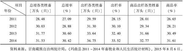表1 2011~2014年玛曲县牲畜增长情况