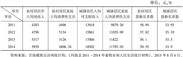 表3 2011~2014年玛曲县居民收入水平