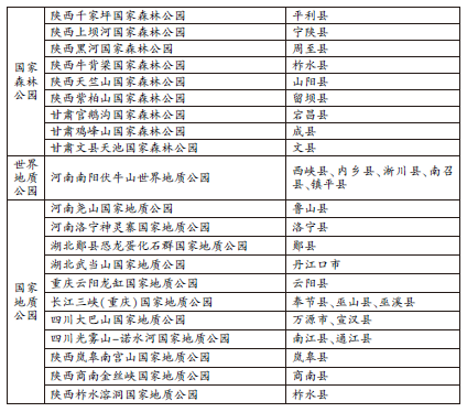 地貌多样性保护区。以河南南阳伏牛山世界地质公园、湖北武当山国家地质公园、陕西南宫山国家地质公园、长江三峡( 重庆) 国家地质公园等为重点,设立地貌多样性保护区,建立严格的保护机制,防止各类经济活动对自然遗存地的影响和破坏。
